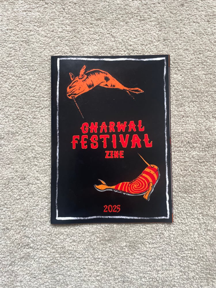 Beautiful handmade zines from gnarwal fest 2025 featuring artist bios, artwork and all sorts of good shit.